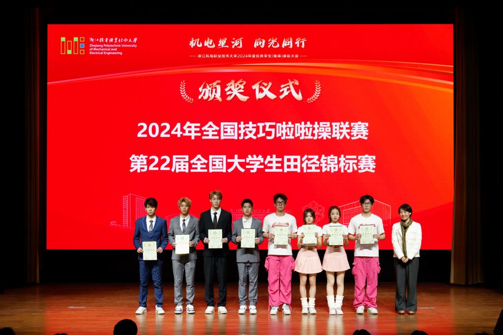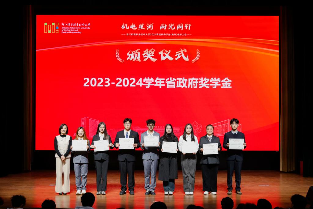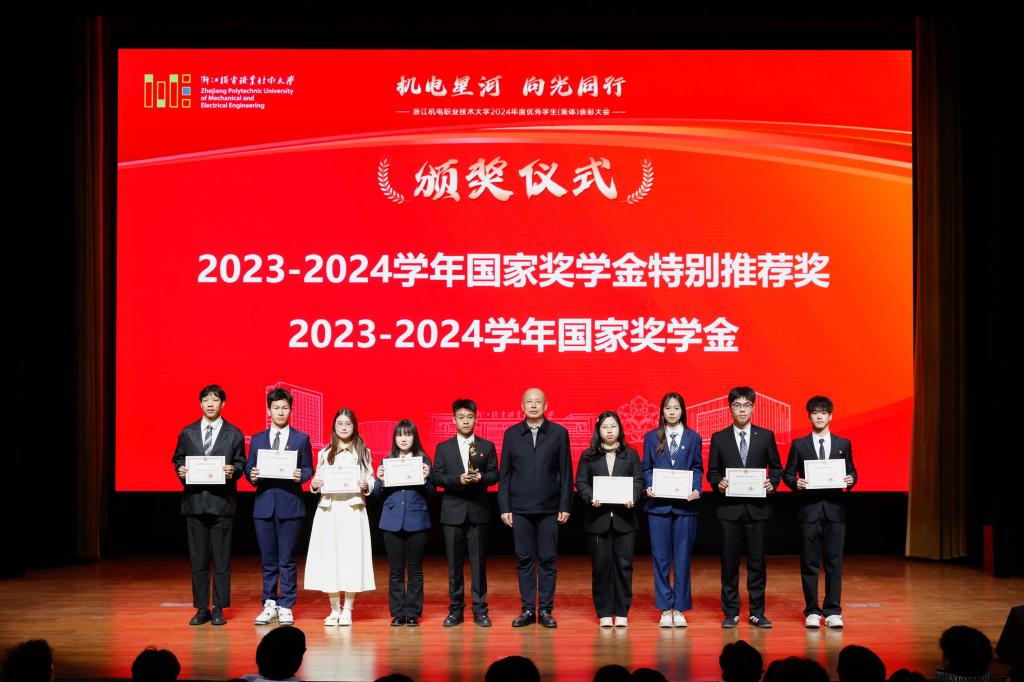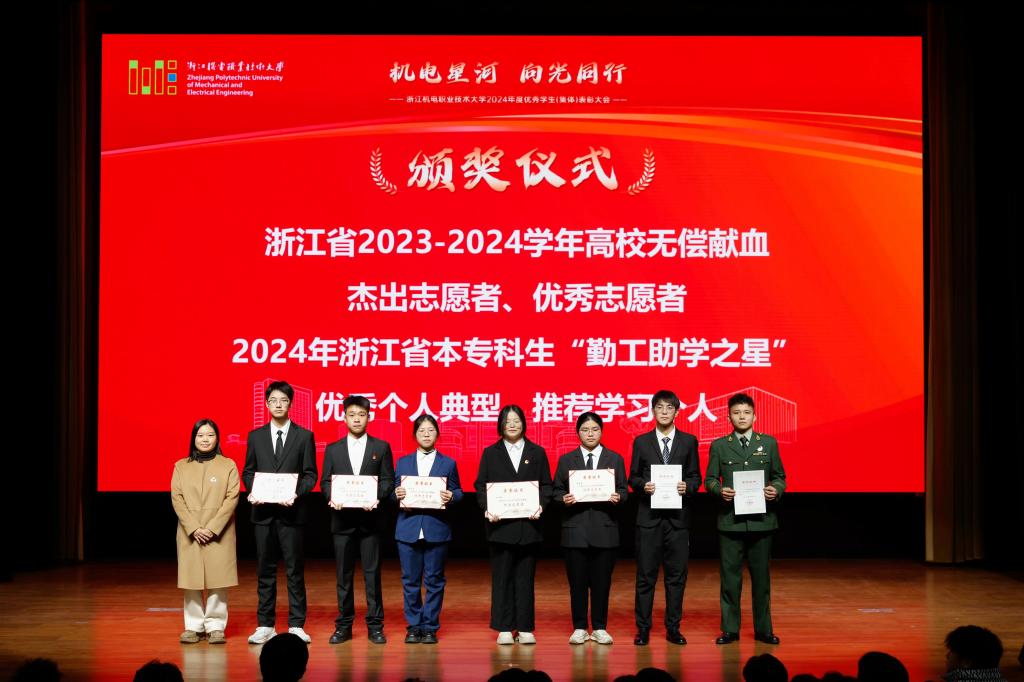 12月30日,浙江机电职业技术大学2024年度优秀学生(集体)表彰大会隆重举行。校党委书记汤兆武,校长贺星岳,党委副书记陈剑波,副校长戴光麟,党委委员、宣传统战部部长、党校办主任陈宇出席会议。相关职能部门负责人,各二级学院总支书记、院长,全体辅导员,获奖代表和学生代表参加会议。