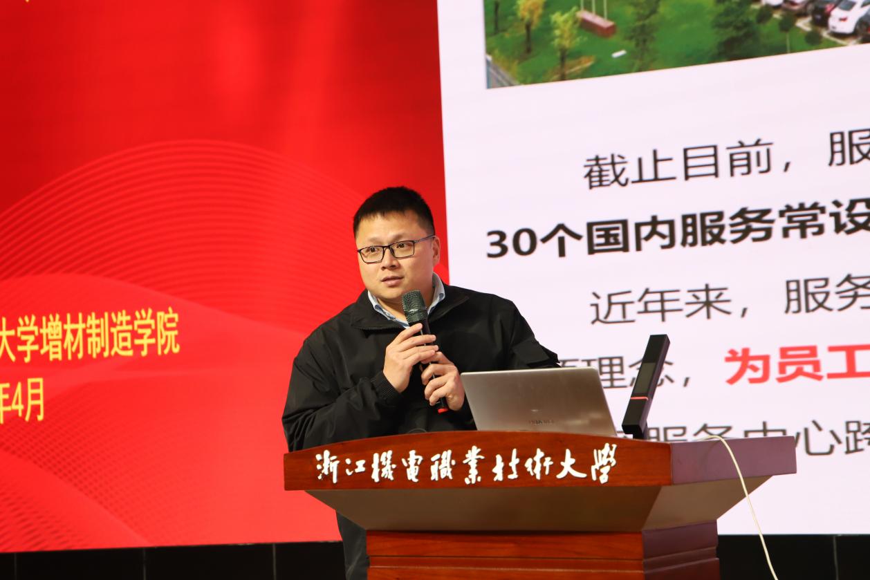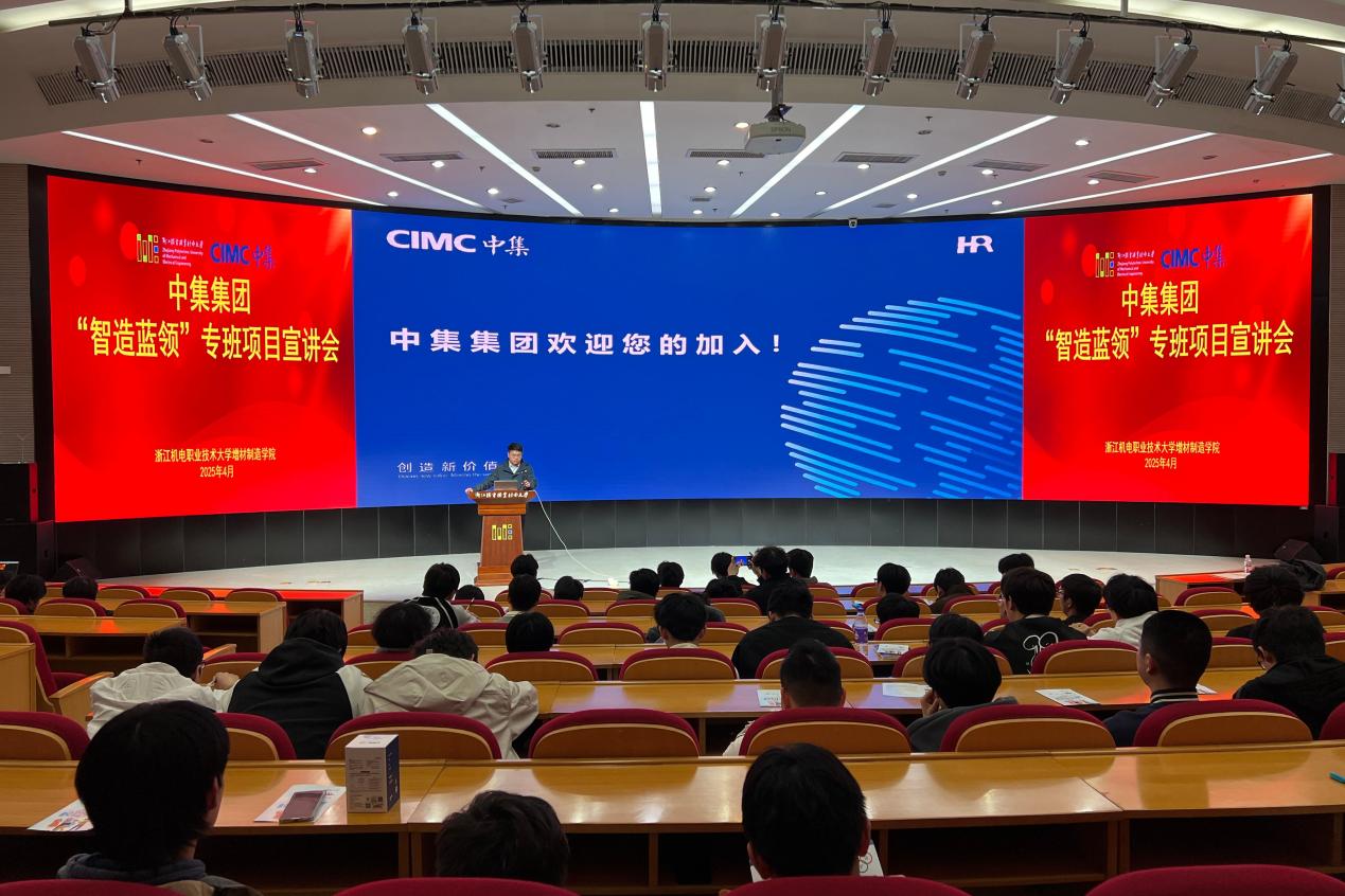 4月2日下午,增材制造学院与中集集团联合举办的中集集团“智造蓝领”定制专班宣讲动员及选拔活动在学校综合楼四楼报告厅举行。宁波中集物流装备有限公司企业管理部领导孙飞、薪酬主管杨岚岚、深圳中集天达空港设备有限公司服务事业部华东区域副主任罗宇、上海中集洋山物流装备有限公司人事行政部王利伟等企业代表一行八人、浙江机电职业技术大学招生就业处处长温长胜、增材制造学院党总支书记陶勇、副院长(主持工作)程文锋以及增材制造学院、智能制造学院、自动化学院近百名学生参加宣讲会。