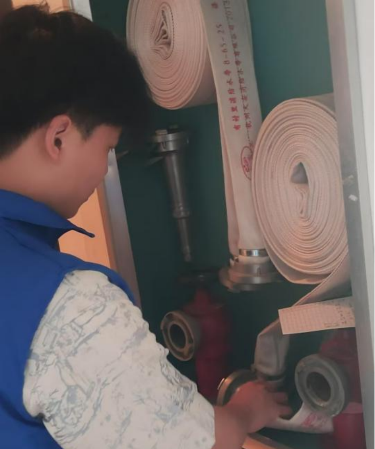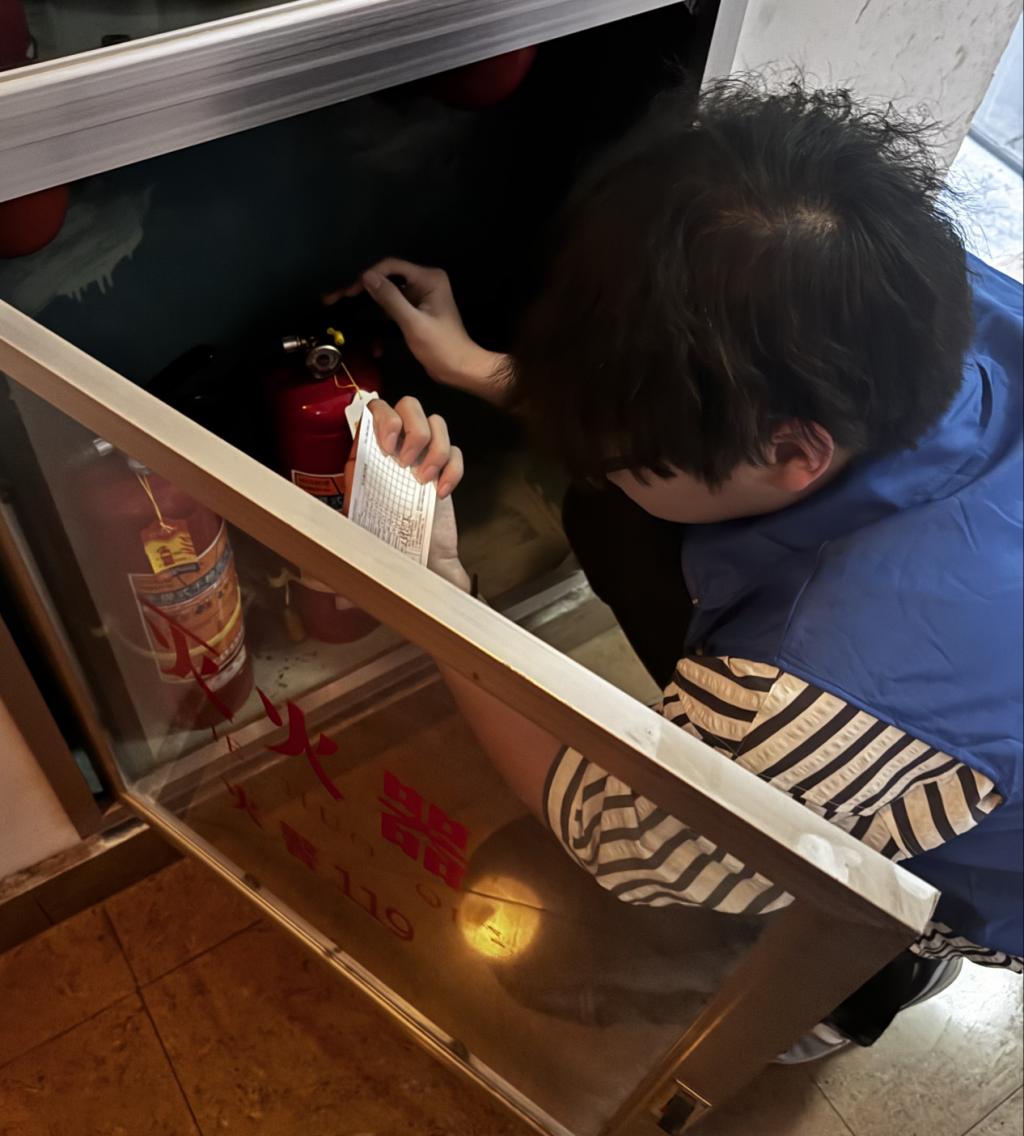 检查过程中,服务队员逐栋逐层排查小区各单元楼的消防设施,检查消火栓接口密封性,通过压力表指针、瓶体锈蚀度等细节判断灭火器有效期。发现消火栓水压过低、灭火器缺少等问题后,立即登记并及时上报社区负责人。此次“校社联动”创新采用“检查-反馈-跟踪”闭环机制,社区负责人现场接收问题清单后,当即协调维保单位制定整改方案。