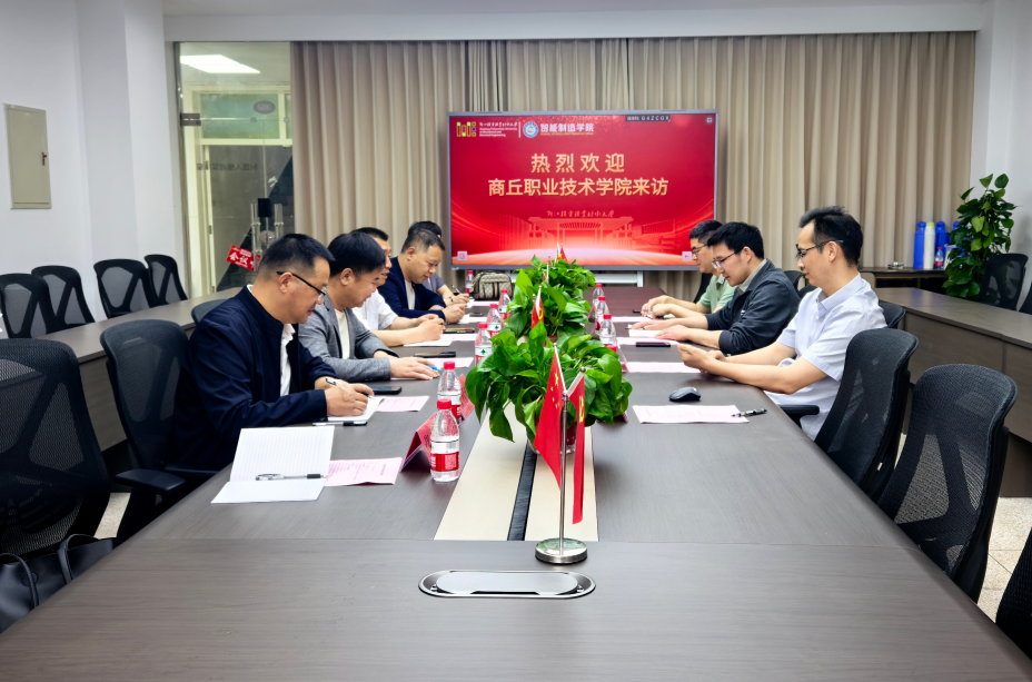 4月17日,商丘职业技术学院机电工程学院院长李新德、副院长王振、党总支副书记李海涛、机械制造教研室主任辛燕、机电一体化教研室主任王桂林、电子信息教研室骨干教师张宏伟等一行6人来我院进行学习交流。智能制造学院副院长蒋立正、实训中心主任赵传强、机械设计制造及自动化教研室骨干教师郑晓峰参加了此次交流会。