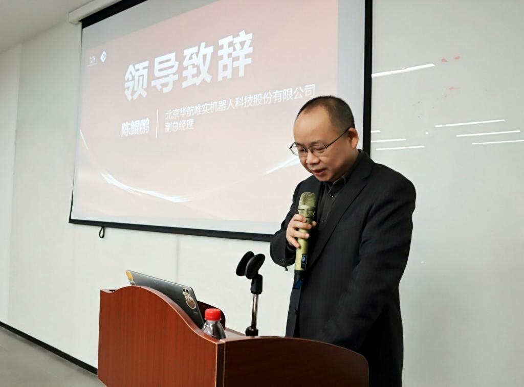 首先,华航唯实副总经理陈鲲鹏致辞,向参加此次典礼的校方领导、教师们、学员们表示热烈的欢迎。他强调,现场工程师项目与浙江机电职业技术大学的合作,是深化校企产学研合作、共育高素质技术技能人才的重要举措。华航唯实持续全力支持学员们的实践学习,配备优质的场地、设备以及师资,为学员们提供专业的教学实践以及到位的生活保障。他表示,希望大家能够珍惜此次实践机会,努力学习提升技能,为未来的职业生涯打下坚实基础。