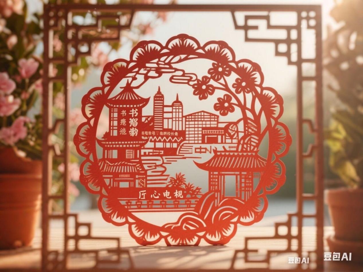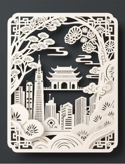 作品介绍:其灵感源于对传统文化传承与创新的追求。剪纸作为传统艺术,承载深厚文化底蕴,而AI则代表前沿科技。创作时,思考如何将二者巧妙融合。先用AI勾勒出现代城市天际线与传统建筑轮廓,再以剪纸的镂空、线条技法赋予其形式美感。这不仅是视觉上的古今碰撞,更象征传统文化借现代科技重焕生机,展现独特艺术魅力与时代价值。