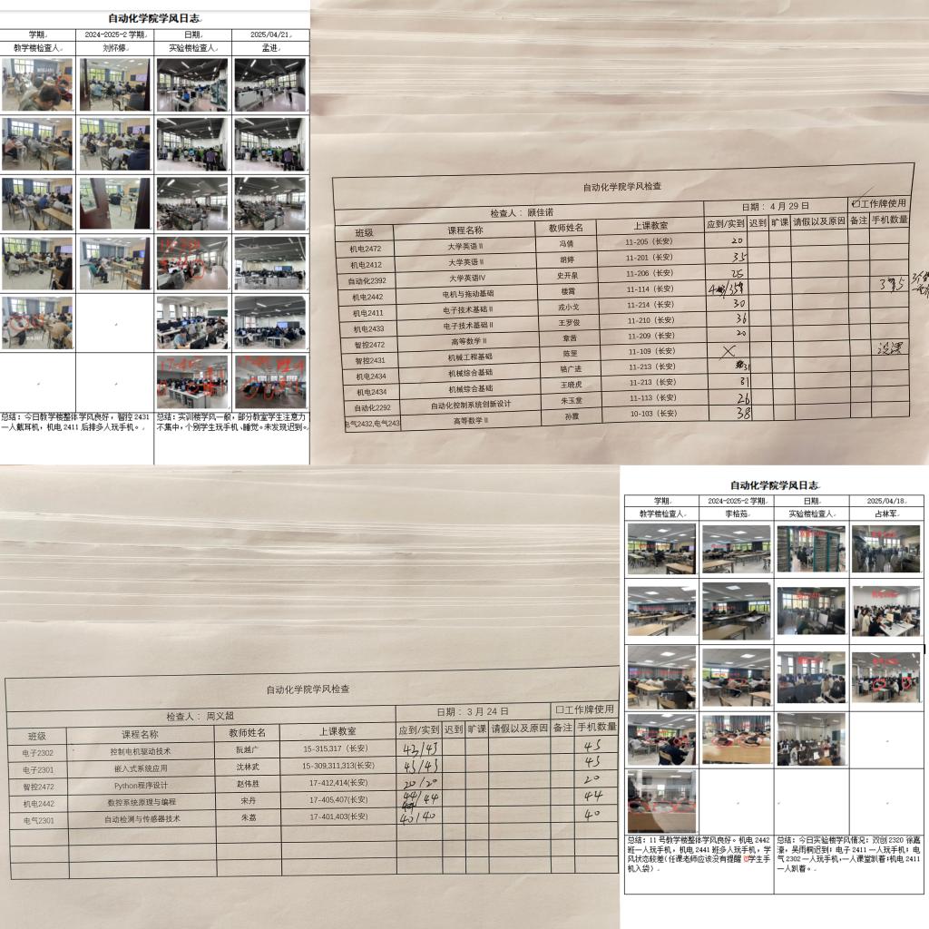 为深入贯彻落实学校学风建设要求,营造严谨治学、积极向上的育人环境,自动化学院于3月至4月精心组织并开展了学风督查专项活动。通过完善制度、动态巡查、精准反馈、整改提升等系统性举措,推动学风建设走深走实,为学生的全面发展注入新动力。