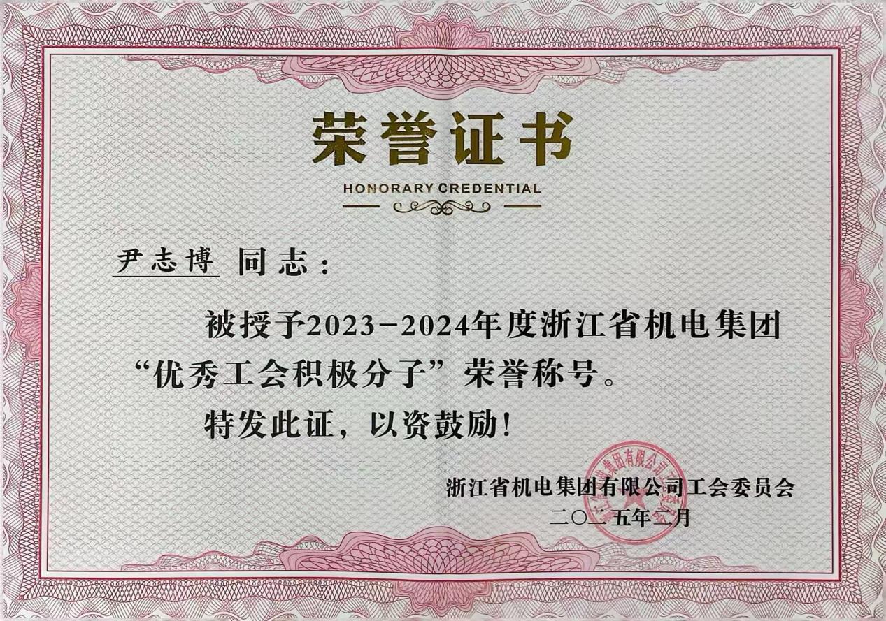 近日,浙江省省部属企事业工会正式公布《关于命名2024年度浙江省省部属企事业星级职工之家、星级职工小家、工会工作成绩突出个人的决定》,现代信息技术学院分工会被授予2024年度浙江省省部属企事业“六星级职工小家”,成为我校唯一获此殊荣的分工会。此外,学院分工会副主席尹志博老师荣获2023—2024年度浙江省机电集团“优秀工会积极分子”荣誉称号。