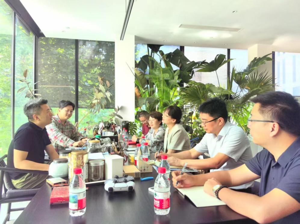 在杭州阿优文化科技公司,校方团队参观了企业动画科普制作中心,深入了解行业前沿技术应用场景。CEO马舒建、动画部总监晏立、编剧部总监江星宇等企业负责人与校方团队展开座谈。