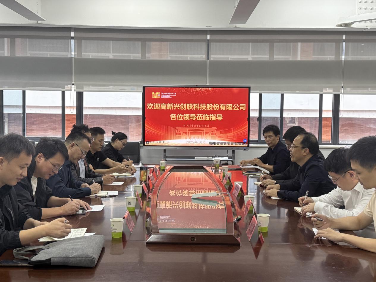 10月20日下午,高新兴创联科技股份有限公司总经理叶卫春率队一行赴智慧交通学院开展交流调研。公司党支部书记、副总经理孙高宠,副总经理、安全质量中心总监李四楠,总经理助理、供应部总监刘召先,总经理助理、客服中心总监陈永军,生产制造中心总监程春仙等共同参与。智慧交通学院党委书记王循明,副书记罗鹏举,副院长姜键骏,城市轨道交通教研室主任曹昕鸷,城市轨道交通机电技术教研室党支部书记任嘉祺等教师代表出席交流。