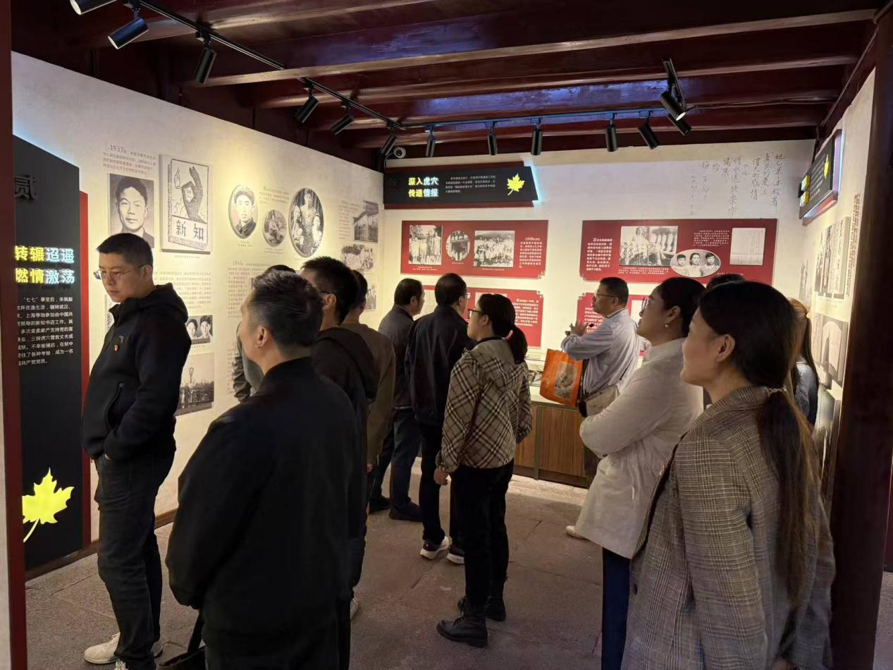秋日的镇海静谧肃穆,位于镇海中学校园东南隅的朱枫烈士纪念楼白墙黑瓦、朱楼雕梁,在苍松翠柏的映衬下更显庄重。近日,智慧交通党委组织全体教师赴此开展红色教育活动,在隐蔽战线英雄的精神家园中追溯红色记忆,汲取奋进力量。