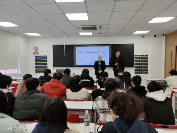当日下午,在6-306教室,座无虚席。周志高副总工程师以“数控加工技术发展与未来人才需求”为主题,为在场学子开启了一扇通往行业前沿的窗口。他结合自身在凯达机床多年的研发与管理经验,从当前数控技术的高精度、智能化、复合化发展趋势讲起,深入剖析了在工业4.0及“中国制造2025”战略背景下,数控领域对人才知识结构和能力素质提出的新要求。
