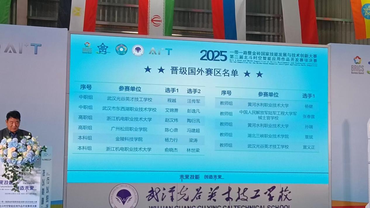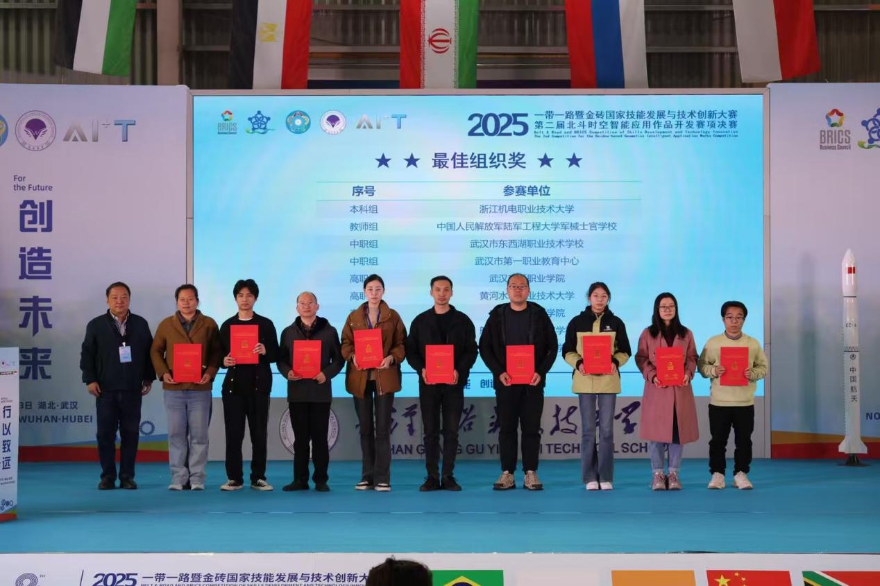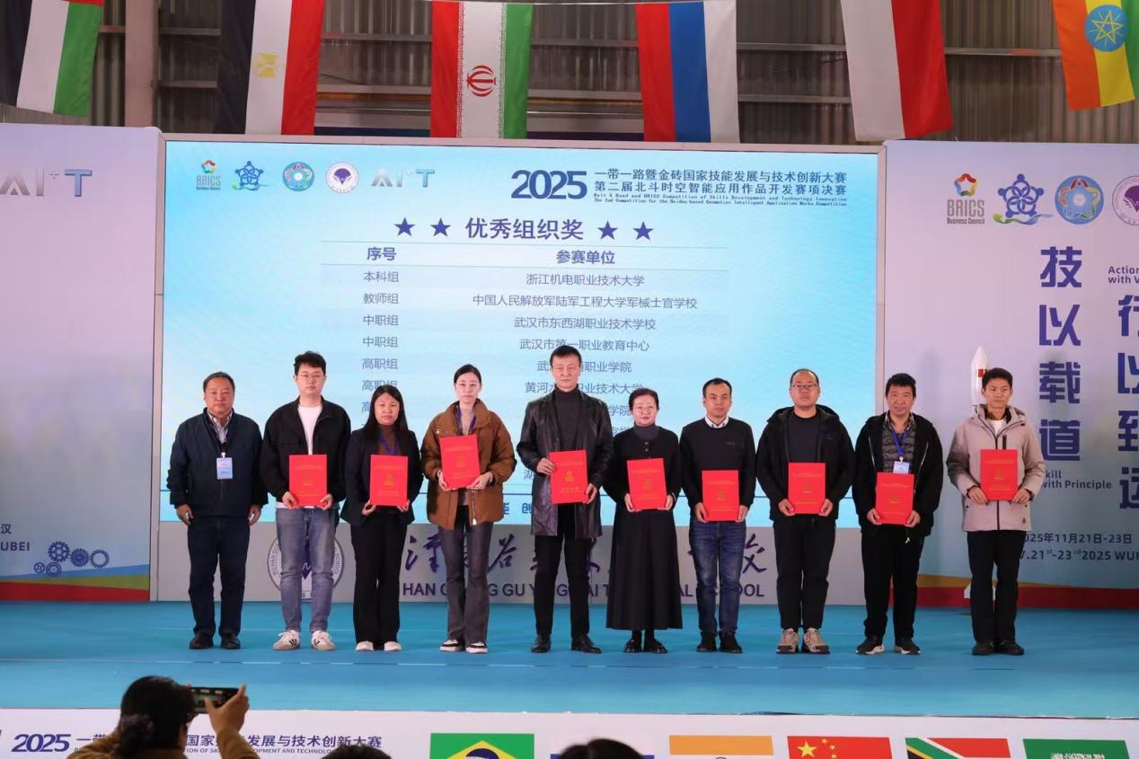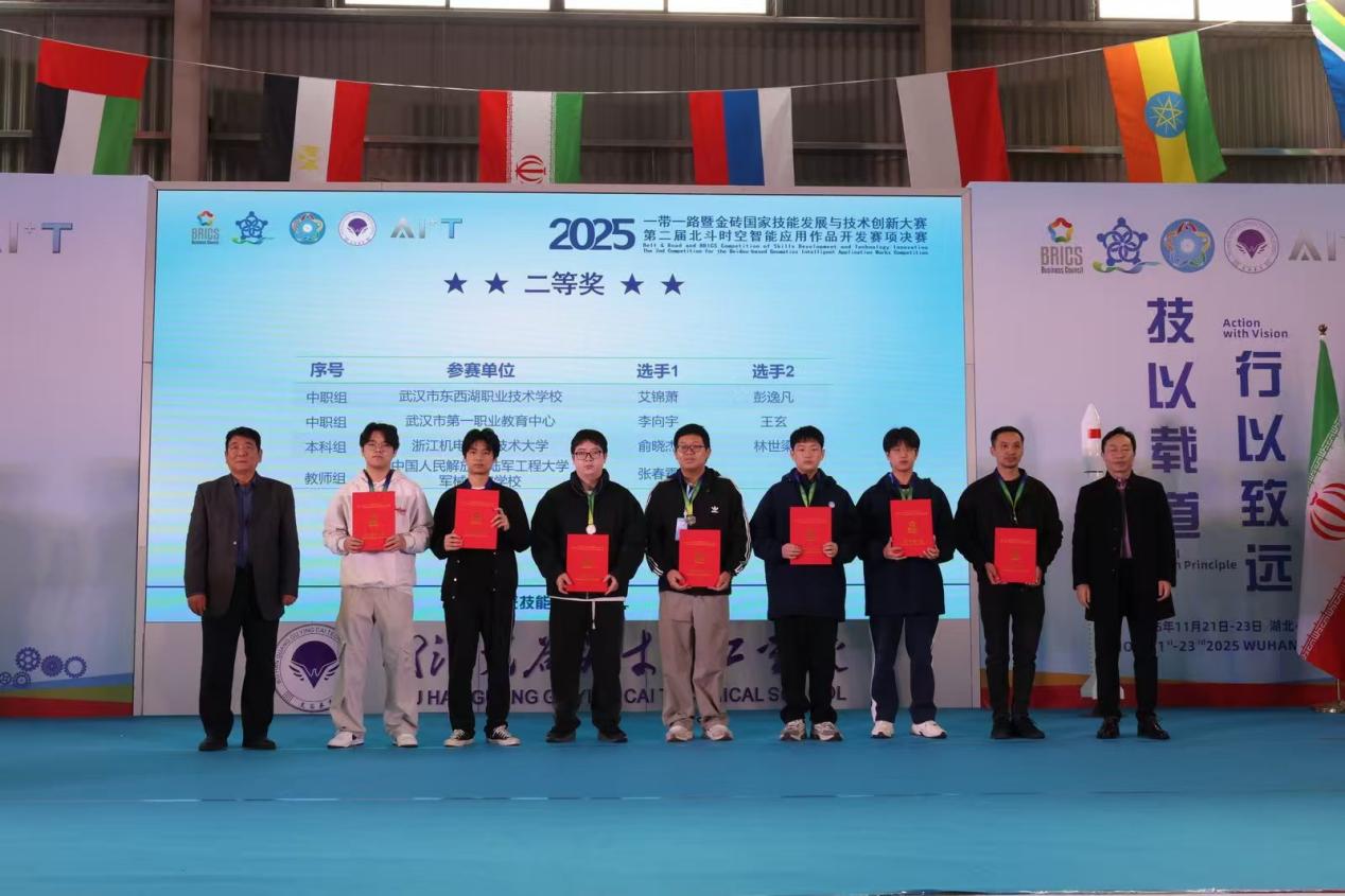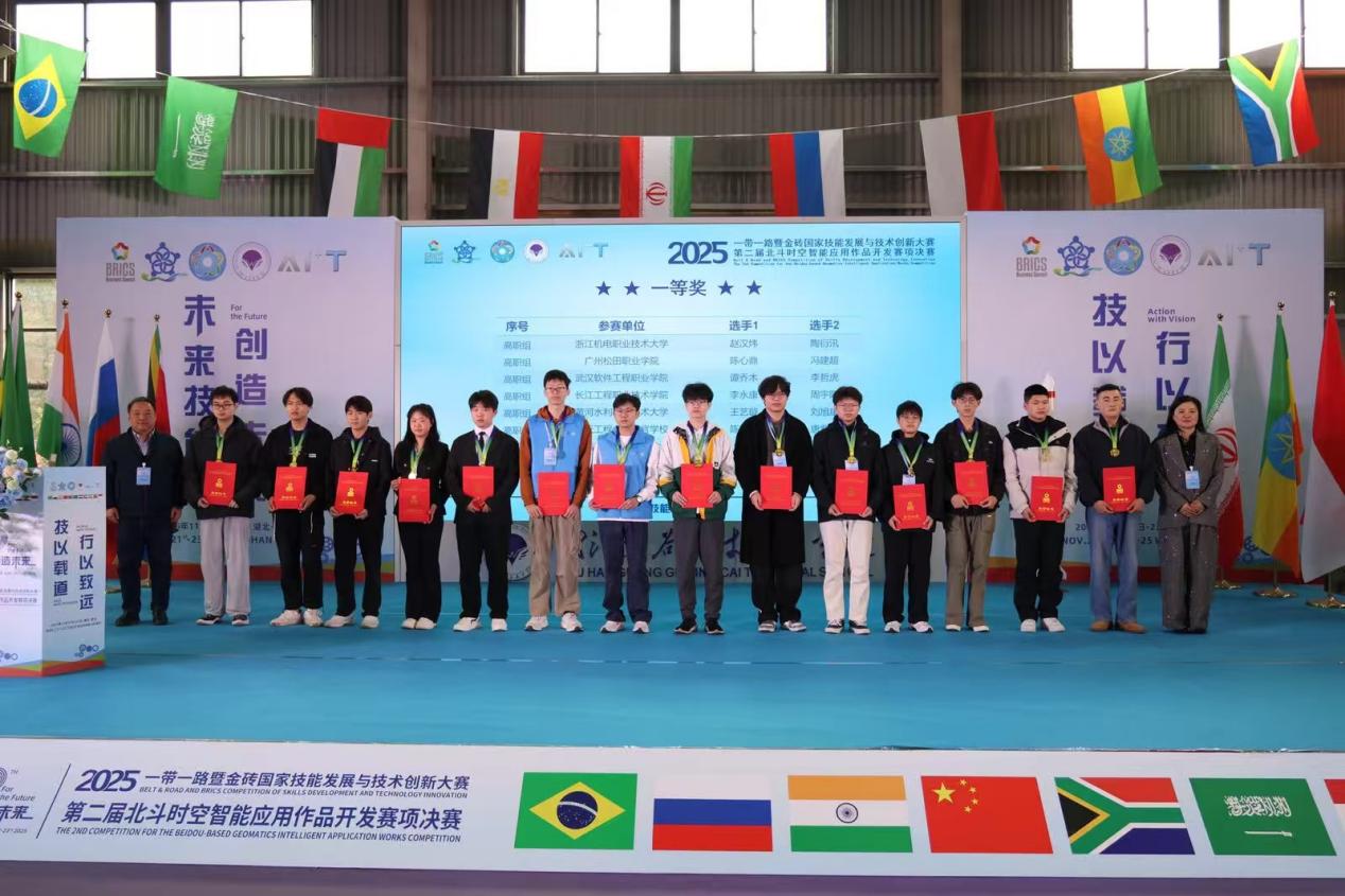 在2025年11月21日至23日于武汉举办的2025“一带一路”暨金砖国家技能发展与技术创新大赛第二届“北斗时空智能应用作品开发”赛项全国决赛中,我校代表队与来自全国多省的86支高职、本科等队伍同台竞技。最终,我校智慧交通学院学生(汽车智能技术专业)斩获高职组一等奖第一名、本科组二等奖第一名及高职组两项三等奖的优异成绩。两组同学代表中国出征北非国际赛,同时为学校赢得了“最佳组织奖(高职组)”“优秀组织奖(本科组)”的宝贵荣誉,终于在历时半年多的备赛之路上迎来了属于他们的高光时刻。
