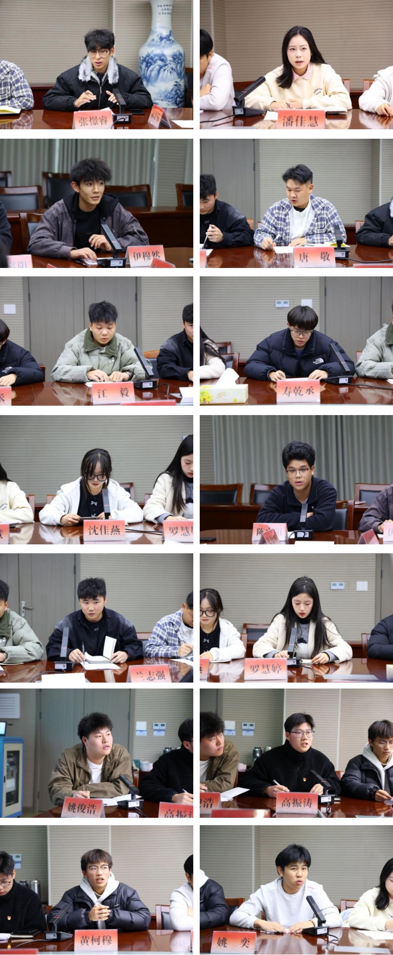 座谈会上,学生代表们围绕教学科研、职业规划与就业指导、后勤生活服务、二课堂活动开展等多个维度积极建言献策。发言中,大家既聚焦课程设置优化、教学方法创新、实践环节完善等学业话题,也关注食堂膳食改善、公寓服务提升、网络资源保障、校园安全防护等生活问题,更对职业规划指导、创新创业支持、文体活动丰富等成长需求提出具体建议。代表们发言言简意赅、重点突出,既直面问题,又给出建设性思路,充分展现了青年学子的主人翁意识与责任感。