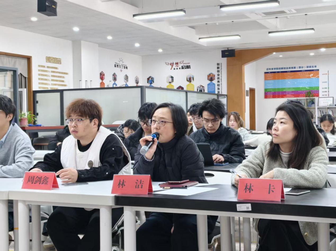 路演现场,各团队围绕项目背景、核心技术、商业模式、市场前景、团队构成及孵化需求等方面进行6分钟陈述,并接受评委提问。评委们从创新性、可行性、成长潜力、团队执行力及与学校专业特色的契合度等维度进行综合打分,并给予针对性指导建议。创新创业学院林洁院长在点评中强调:“好的创业项目不仅要‘想得好’,更要‘做得实’。希望入驻团队珍惜基地资源,在真实场景中打磨产品、验证模式、创造价值。”
