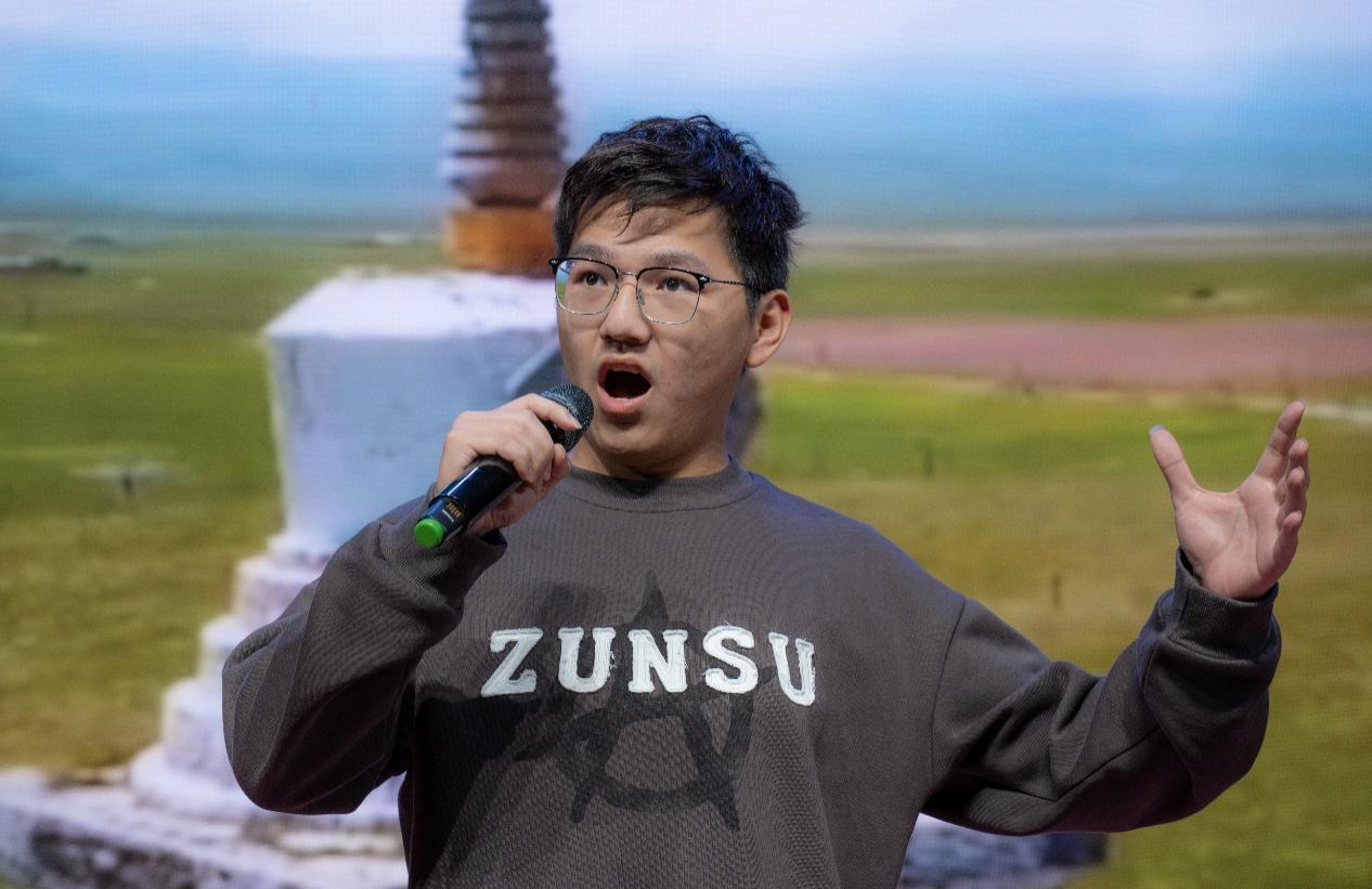 2025年校十佳歌手冠军王俊祥与搭档董嘉乐联袂献唱《交换余生》。王俊祥以极具穿透力的嗓音与细腻入微的情感处理,将时空交错中的深情执念层层铺陈;董嘉乐则以稳定而富有感染力的和声默契呼应。二人凭借出众的演唱技巧与娴熟的舞台掌控力,带领观众沉浸式走进一段超越现实的音乐叙事,尽显不俗的歌唱实力与艺术表现力。