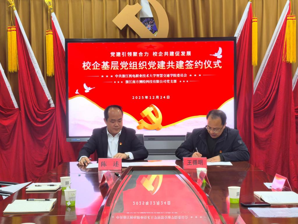 为了进一步推动党建工作和校企协同,浙江南方测绘科技有限公司党支部与中共浙江机电职业技术大学智慧交通学院委员会、中共浙江机电职业技术大学智慧交通学院党委城市轨道交通机电技术教研室党支部签署了《党建共建协议》。协议明确了通过“组织联建、党员联动、资源联享”的方式,推动党建与业务的深度融合,进一步促进双方共同发展,实现“以共建促党建,以党建促发展”的目标。