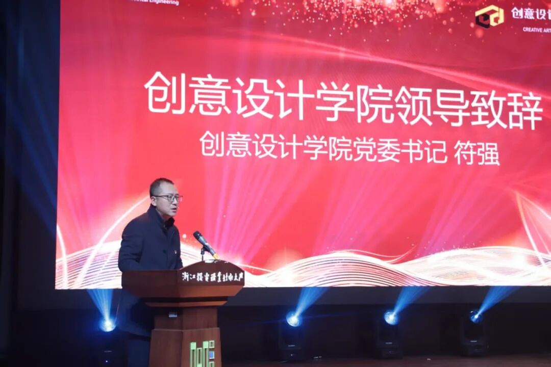 同心聚力绘创意,艺彩纷呈启新篇。1月7日晚,创意设计学院2025年“最美设计・艺路向阳”颁奖典礼暨年度总结大会在滨江校区5号楼大报告厅璀璨启幕。浙江机电职业技术大学党委委员、纪委书记郑东、创意设计学院院长季海祺、创意设计学院党委书记符强、学生工作部副部长杨哲、创意设计学院副院长程文锋、创意设计学院党委副书记陈周丽、校团委副书记庞万兴,以及班主任和学生代表等众多人员齐聚一堂参与本次活动。