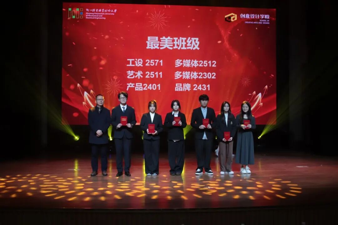 高光所向,荣光所至。本次颁奖典礼延续了创意设计学院一贯坚持和倡导的育人文化,是聚焦“技术与艺术相融合,培养创新型高技术技能人才”的人才培养目标的体现。2025年各类奖项依次揭晓,涵盖“最美优秀学生干部”“最美班级”等6大类“最美”奖项,以及在省级乡村振兴与国家级“两山杯”赛事和校廉洁文化作品设计大赛中取得突出成绩的团队与个人。一张张证书,是肯定更是期许;一个个身影,是榜样更是力量。他们以行动诠释“艺路向阳”的精神,激励全体师生在新的一年里继续向前、向上。