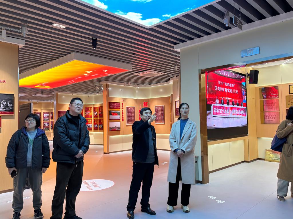 卢培苗书记一行首先参观了我校筑牢“红色根脉”主题教育实践基地。查广云围绕“红色信仰”“红色历程”等六大核心主题版块,深入阐述了基地建设的时代背景、深刻内涵与逻辑架构,详细介绍了基地建设以来坚持开放建馆、开门办课,依托场馆红色展陈资源和虚实融合的教学场景开展“馆课结合”“馆企结合”“馆社结合”的有效做法。查广云指出,基地作为浙江“高校红色文化弘扬基地”“产业工人思想政治教育基地”,依托浙江“红色根脉”资源,立足职业教育类型定位,紧密结合思政课教材内容,及时融入党的二十大和二十届历次全会精神,坚持党的创新理论武装与基地建设同步推进,卓有成效的打造场馆思政课、行走的思政课,场馆赋能思政课建设取得了丰硕成果。查广云还就如何推进红色场馆服务职业本科思政课的实践教学与来访的药科职业技术大学的思政课同仁进行了现场交流。