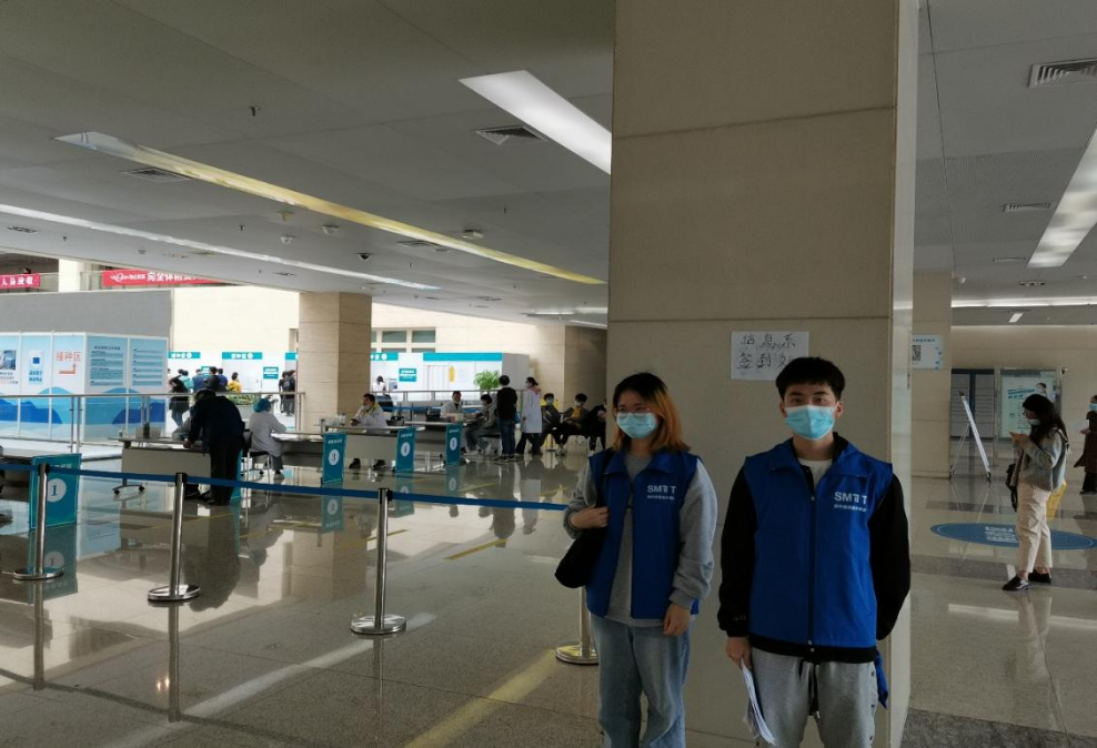 现代信息技术学院团总支组建了志愿服务小队,应用小程序扫码进行接种信息采集。接种现场,志愿者除了负责现场引导、信息采集、电脑登记、疫苗接种外,还配合方舱安全保障人员,随时保障接种安全。