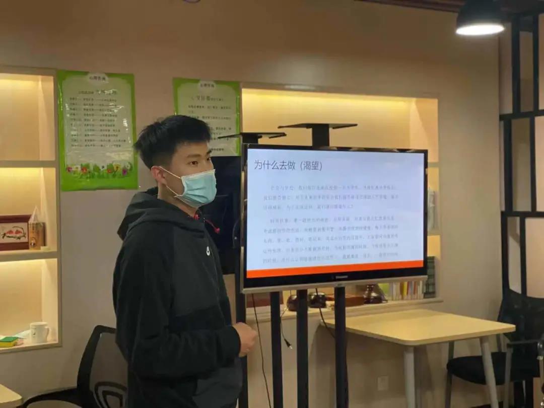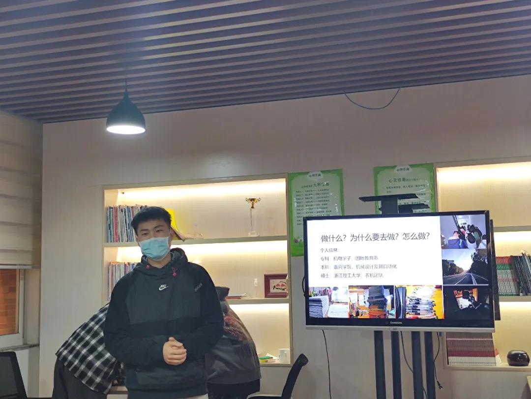 学长以精彩的自我介绍吸引了大家的眼球,他是国际教育学院2015级数控专业的学生,在本校完成学业后顺利升本进入嘉兴学院继续深造,目前在浙江理工大学就读硕士。他回忆到,大学期间有过轻松、自由的生活,但更多的是在图书馆自习。学长展示了许多照片,清晨的朝阳,傍晚的余辉,一摞摞的草稿纸,一支支用完的笔……一张张照片记录了他一路的学习与成长。是自律的作息与学习安排使他得到了一步又一步提高。