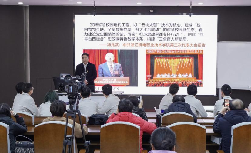 2020年12月19日至20日,全国职业院校智能化赋能现代高职教育论坛暨第四届说“专业群·专业·课程”研讨会在杭州召开。研讨会由中国职业技术教育学会主办,浙江机电职业技术学院承办,来自全国百余所职业院校和行业企业代表300余人到场参会。本次研讨会征集了243项全国高职教育特色案例,确定了13个现场展示案例,分为开幕式、专家报告、说专业群、说专业、说课程、示范课堂及研讨交流等环节。马克思主义学院三位老师受邀参与示范课堂展示环节。