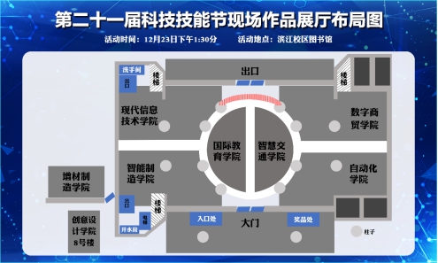 12月23日下午,以“科技筑梦想,匠心出达人”为主题的第二十一届科技技能节作品成果展在滨江校区图书馆大厅举行,各分院布展项目44项,展品千余件。学校党委副书记周增逵出席了本次活动,相关部门负责人、二级学院总支书记、辅导员及师生1000余人参加了活动。