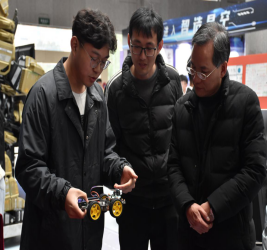 本届科技技能节现场作品展呈现三大特点:一是突出展示内容的整体性。按照“科技筑梦想,匠心出达人”的主题,重点围绕学科专业特色,精心组织布展,全面有效展示我校学生一年来运用专业能力,参与科技创新、发明创造的各类成果。二是突出新技术应用与互动体验。各区布展普遍应用声、光、电等多媒体技术手段,充分融入现代感、科技感,注重展区的互动环节设计,增加了观展的乐趣与体验感。三是突出专业社团的参与。挖掘大量专业社团作品进行展出,其中不乏在省级、国家级获奖的学科竞赛作品,充分展现了我校学生最高的技术技能水平。