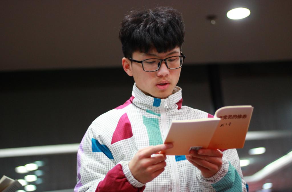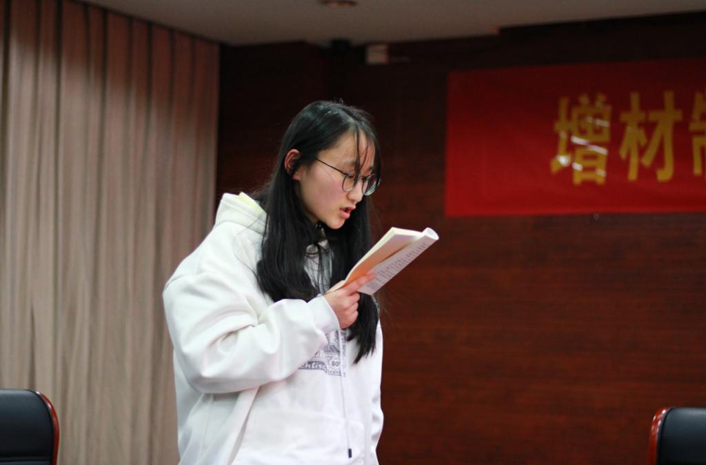 活动伊始,组织部部长李明科率先带领大家诵读经典,他用生动的语言,声情并茂地为我们讲述了中国近代史以及中国共产党如何一步步带领中华民族走向富强,他提倡大家要把“读经典、悟原理”当作一种生活习惯、一种精神追求,多读书,读好书。看书中应融入自己的思考,要站在宏观、历史的角度看待和分析书中内容,提高自己的理论水平和思辨能力,用经典涵养正气、淬炼思想、升华境界、指导实践。呼吁同学们多多参加志愿者活动、社会实践等,积极向党组织靠拢,提高自我奉献意识。