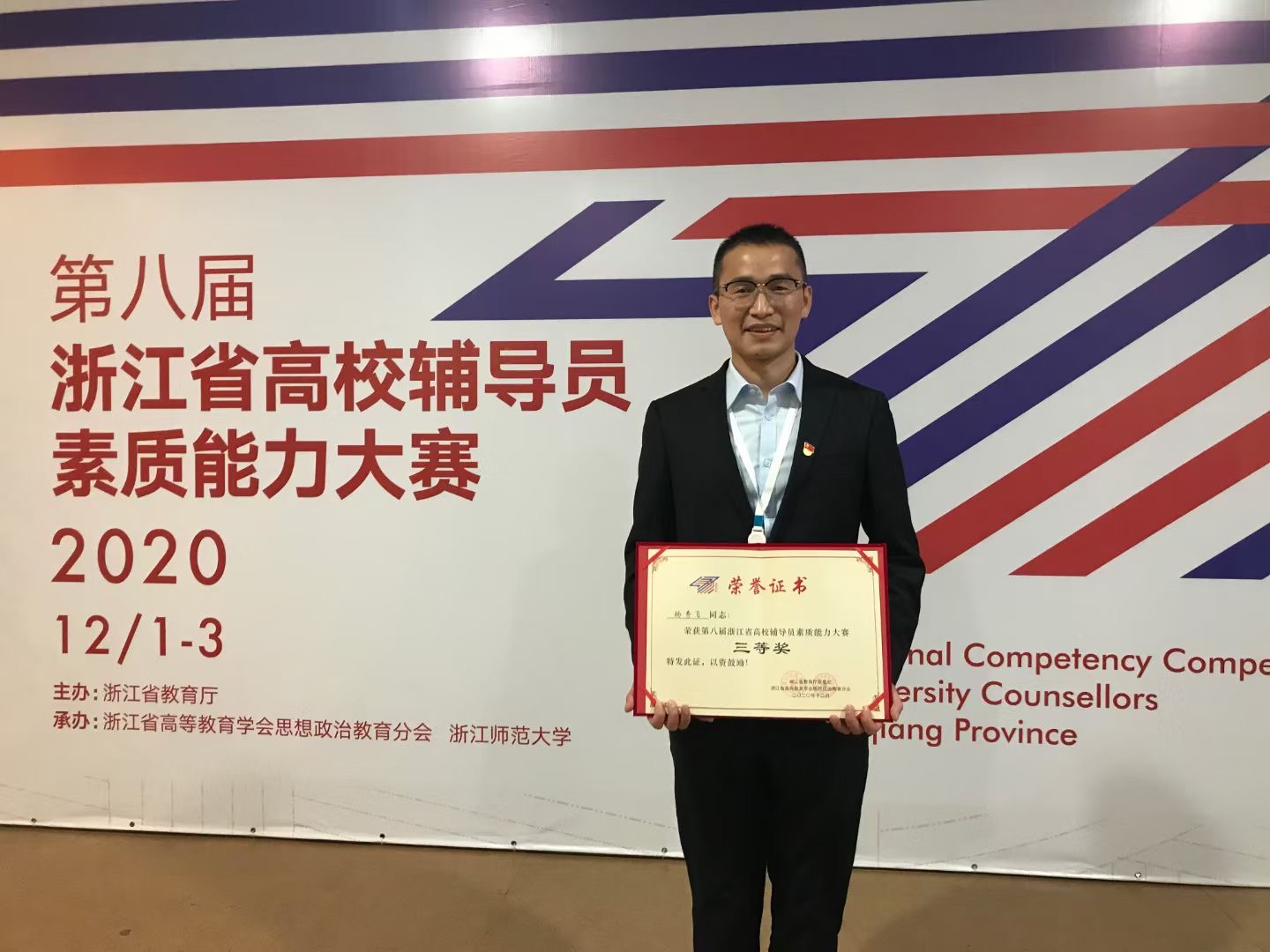 12月1日至12月3日,第八届浙江省高校辅导员素质能力大赛在浙江师范大学举行,我校由现代信息技术学院党总支书记任峰,学工部部长张伟领队参加了本次比赛,辅导员杨秀飞从全省87所高校的106名辅导员中脱颖而出,荣获三等奖。