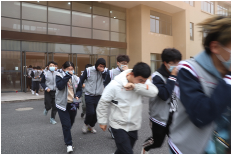 下午1点整,疏散演练正式开始。演练现场,11号教学楼烟气浓密,警报声响彻校区,学生们在学校安保人员的指挥下,弯着腰,捂住口鼻,弓身沿着疏散指示通道跑出,在最快的时间内有序撤离到安全地带。医疗救援、校安保人员快速反应,个个训练有素。通过消防逃生疏散演练,学生们体验了模拟的火灾现场,把理论知识化为实践经验,学习火场自救逃生之法及现场的应变应急能力。