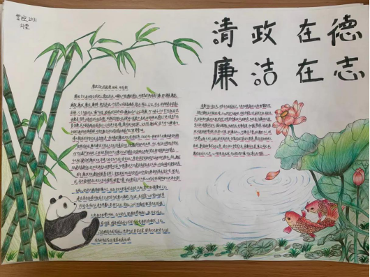 11月12日至11月30日,廉政文化月系列活动进入第二阶段,长安校区所有班级开展了手抄报创意绘制活动。学生参赛积极性高,丰富的内容、多彩的图样,学生们用多样的表现形式绘制手抄报作品,本次大赛共评选出获奖作品24份,其中一等奖作品3份,二等奖作品5份,三等奖作品8份,优胜奖作品8份。