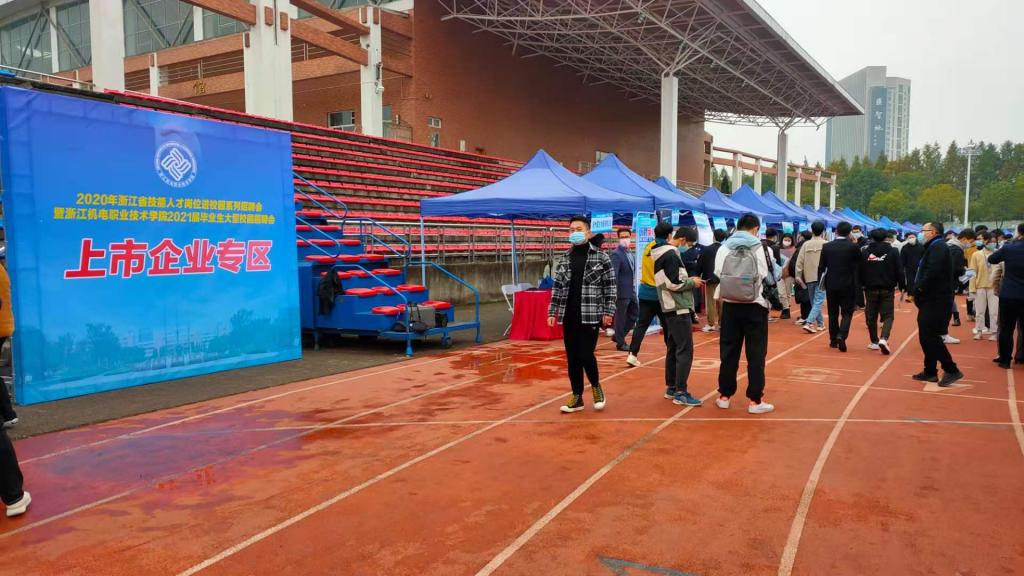 11月28日,学校2021届毕业生校园大型招聘会暨浙江省技能人才岗位进校园系列招聘会在滨江校区田径场隆重举行。本次招聘会由浙江省人力资源和社会保障厅主办,浙江省就业管理中心、浙江省职业介绍服务中心、浙江省职业技能教学研究所、杭州市人才管理服务中心(杭州市人事考试院)和我校联合承办。学校副校长周纯江、省人社厅职业介绍指导中心及省人才中心相关领导亲临现场指导,了解用人单位人才需求、毕业生求职表现等情况,并与用人单位和前来应聘的学生进行了亲切交流,共同关心毕业生的就业工作。