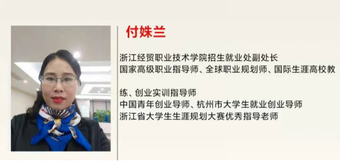 第一讲由浙江经贸职业技术学院招生就业处副处长付姝兰老师主讲,为同学们带来主题为“规划自我,把握未来,遇见美好”的精彩讲座。