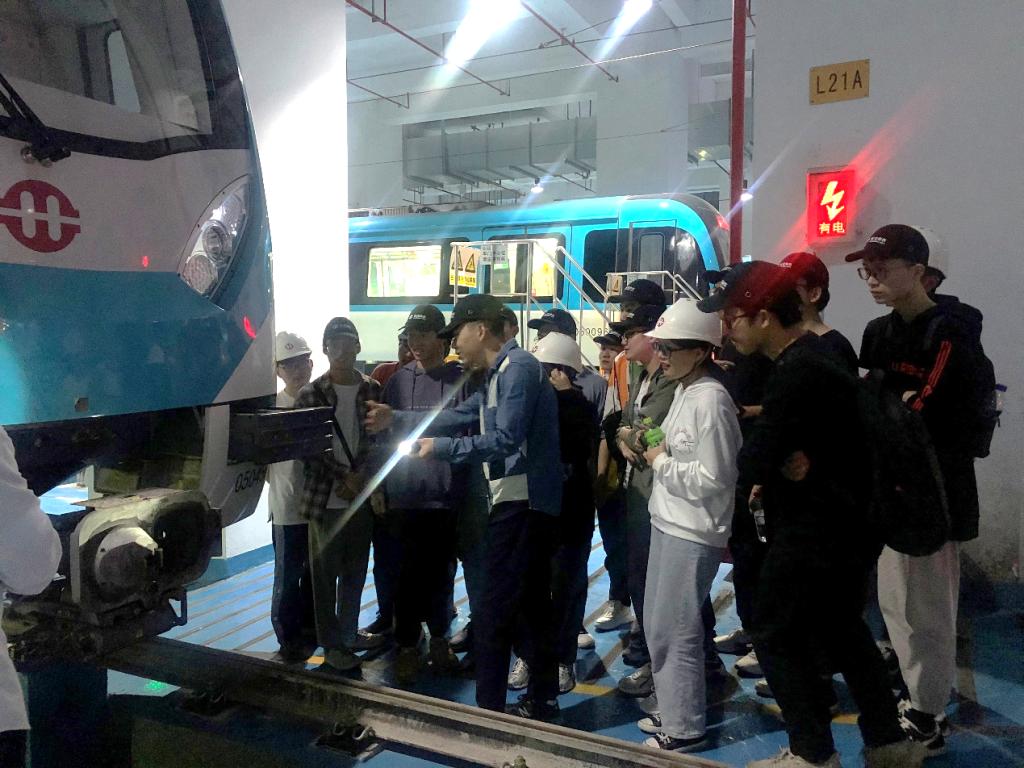 最后,由五常车辆段的专业工作人员带领学员们进入列车停放区域经行列车讲解。专业工作人员向学员们介绍了列车的顶部、车厢、底部的各种详细情况,让学员们亲手操作列车车门、车窗的在紧急情况下的手动开启。