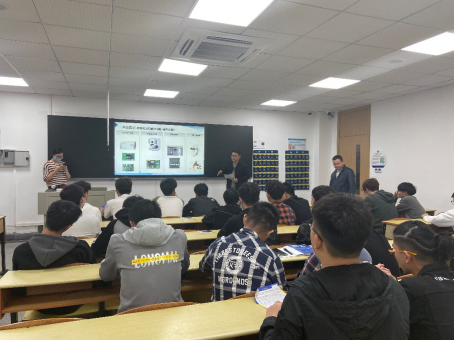 莫经理和王经理主要介绍了集成电路装备的行业现状和发展趋势、企业规模和文化理念、行业领先优势地位、产品介绍、发展空间、培训体系、薪酬福利、岗位需求、招聘流程等内容。会上,智能制造学院4位往届毕业学长交流分享心得体会,使大家倍增求职信心,应聘意向者对关心的问题进行了提问,热烈交流,所提出的问题都得到了公司全面、认真的解答。