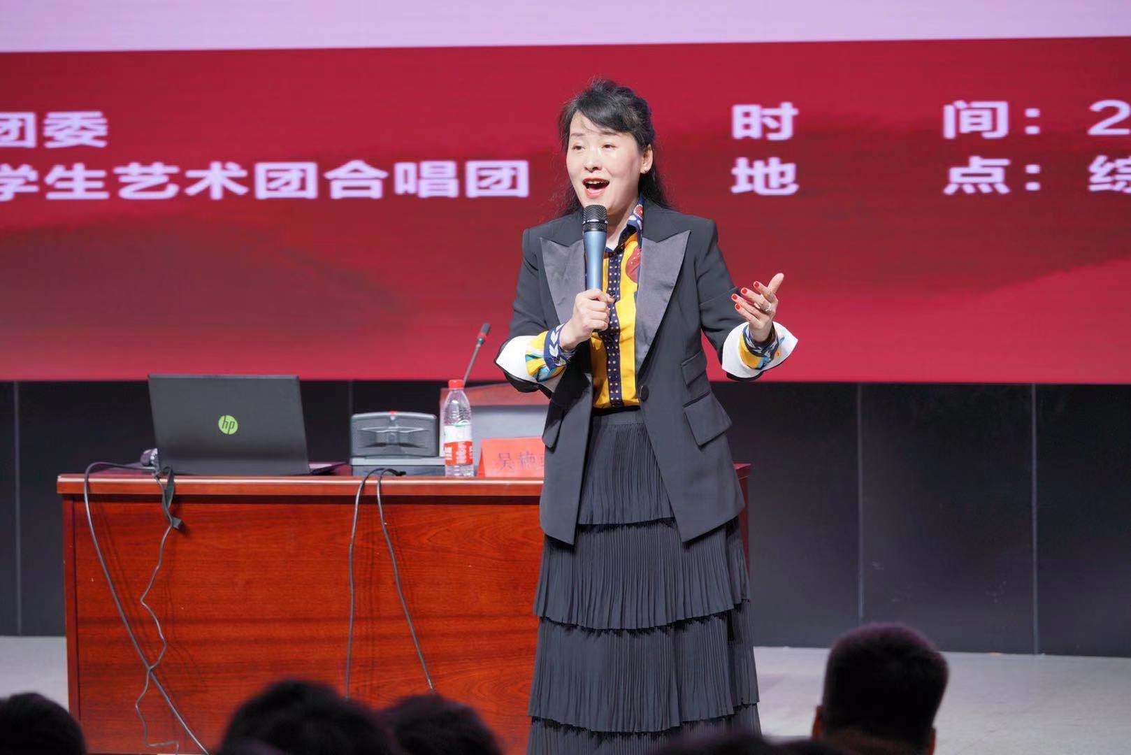 在声乐演唱指导环节,吴教授分别为校大学生艺术团合唱团的三名同学指导歌唱技巧,她从形体训练到气息控制,一一耐心地为每位同学示范讲解。在互动提问环节,吴教授对现场同学提出的声乐演唱方面的困惑一一解答。最后,吴教授即兴为大家演唱了一首她的原创作品《沙漠里的玫瑰花》,那清扬婉转的歌声让同学们听得如痴如醉,台下掌声雷动。