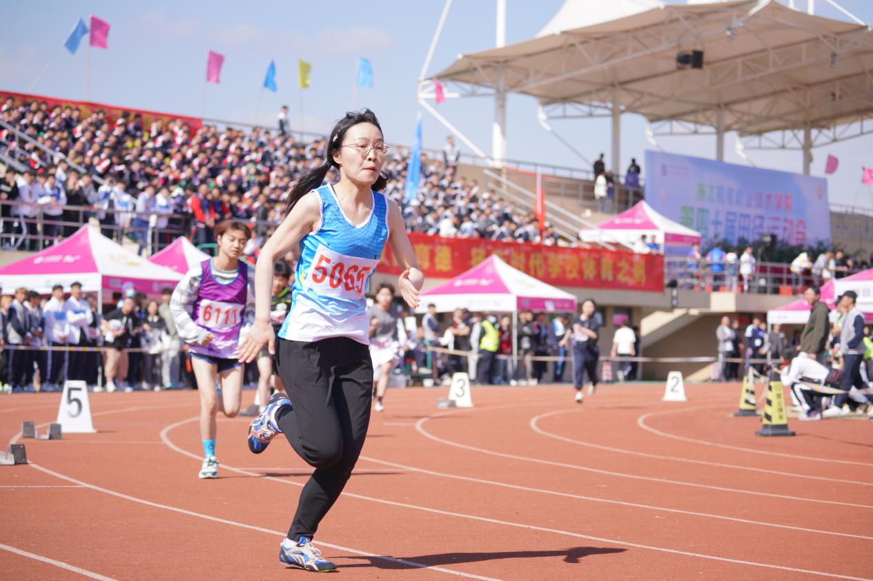 信息分工会的教师运动员们是我们学习的榜样,他们的青春气息感染了运动场上的每一位学生。现代信息技术学院辅导员杨秀飞老师飞驰在红色跑道上,年轻的身姿散发出无限青春力量!
