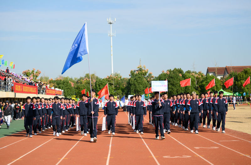 学院运动会入场式方阵表演展示现代信息技术学院2020级新生的整体风貌,他们步伐铿锵,高举中国“芯”,在整齐有力的口号:“IT人,中国芯,鼎力支持,决战未来”中展示信息精神和竞技力量。