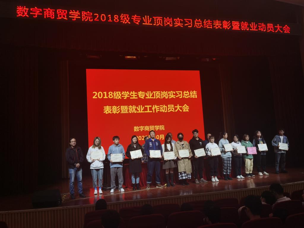 2020年10月28日下午,数字商贸学院在5号楼报告厅举行2018级学生专业顶岗实习总结表彰暨就业动员大会。分院副院长朱伯伦、党总支副书记符强及相关老师、全体2018级学生参加了大会。