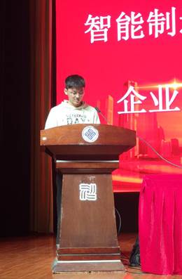 分院院长杜红文讲话,她对实习归来的学生表示亲切的慰问,赞扬了同学们在实习期间的出色表现。她从顶岗实习课程设置的历史出发,强调了顶岗实习这门课程的重要性;顶岗实习是职业院校实践教学体系的重要环节,承载着培养学生由“学习者”转变为“职业人”的教育目标;顶岗实习是理论与实践的结合应用,是同学们就业前的一次预演,也是同学们发现自身不足、回校提升自我的一次机会。最后,她希望广大智能制造学子在以后的学习和生活中努力学习专业知识,提高实践能力,做到知行合一,为将来的工作奠定坚实的基础。