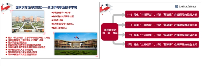 论坛上,我校马克思主义学院查广云教授做了题为《立足高职,深化创新,努力打造“后疫情时代”混合式思政金课 ——以“思想道德修养和法律基础课”在线开放课程建设为例》的主题交流。查教授首先介绍了学院的发展历程和办学取得的辉煌成就,简要汇报了在线开放课程建设的时代背景,政策背景和专业背景,系统阐述了课程建设的“四美”维度:一是强化“三性理念”,打造课程的思想之美”;二是优化“三美体验”,打造课程的开篇之美;三是聚焦“三大精神”,打造课程的内涵之美;四是凝练“三特栏目”,打造课程的意蕴之美。通过着眼新时代、新目标和新要求,立足蔓延全球的新冠疫情,当代大学生如何上好思想政治理论课,牢固树立科学世界观、人生观、价值观,努力成为德智体美劳全面发展的时代新人等问题,精心设置虚拟仿真体验平台、“抗疫精品小课堂”“习话人生”等系列特色栏目,把伟大的抗疫精神融入课程教学,倾力打造时代化高职性“抗疫版”思政课在线金课。
