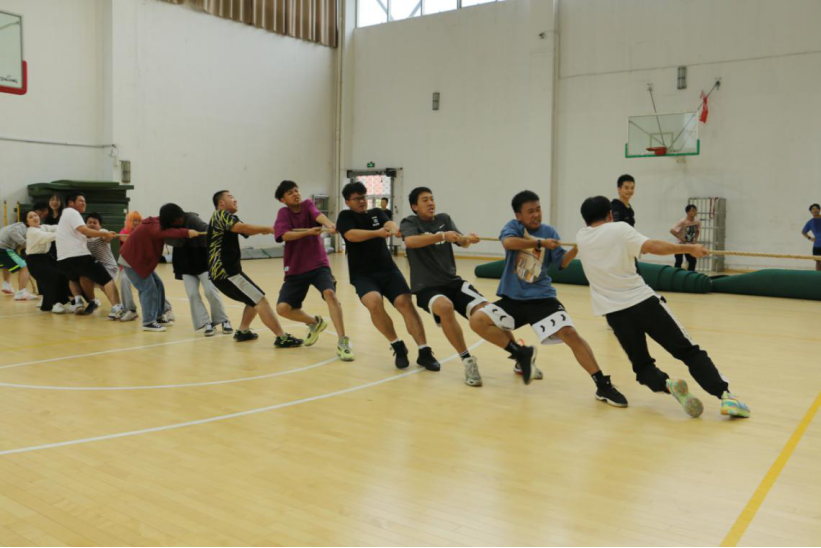 当比赛的哨声响起,只见参赛的队员们紧握长绳,卯足了劲拼命发力,在胜负难分的时刻,大家依然毫不退却,咬紧牙关,坚持到底。赛场上的队员个个斗志昂扬,用他们的汗水为我们讲述了团结的含义,他们顽强的毅力与拼搏的精神让每一个人感动。