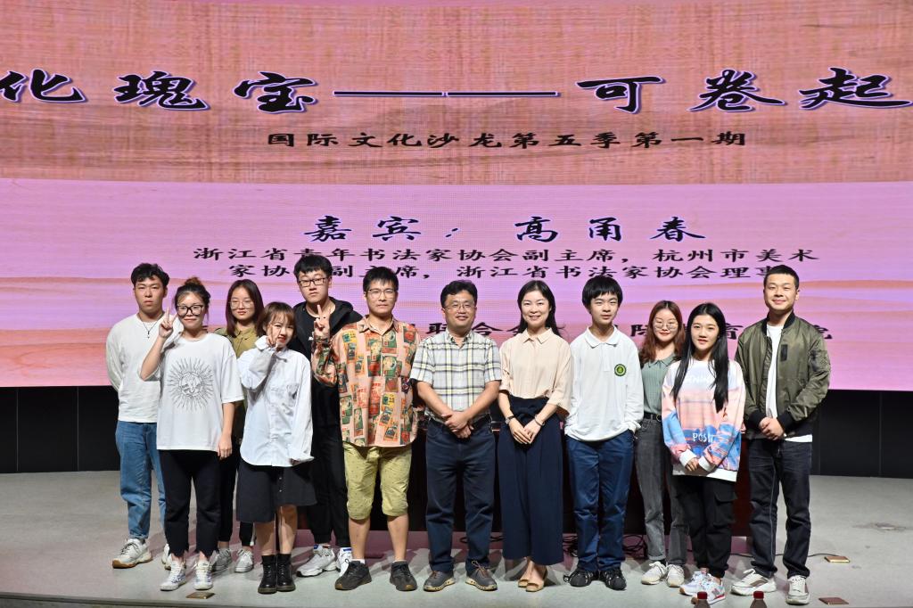 国际文化沙龙已成功举办四季,受到了广大师生的关注与好评,为进一步拓展我院学生的国际视野、提升学生的综合素养,今年国际文化沙龙第五季如约而至,9月22日晚,校社团联合会和国际教育学院在综合楼四楼报告厅联合举办国际文化沙龙第五季第一期《世界文化瑰宝——可卷起来的艺术》,本次沙龙特邀浙江省青年书法家协会副主席,杭州市美术家协会副主席,浙江省书法家协会理事高甬春老师,吸引了100余名师生报名参与。