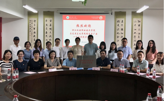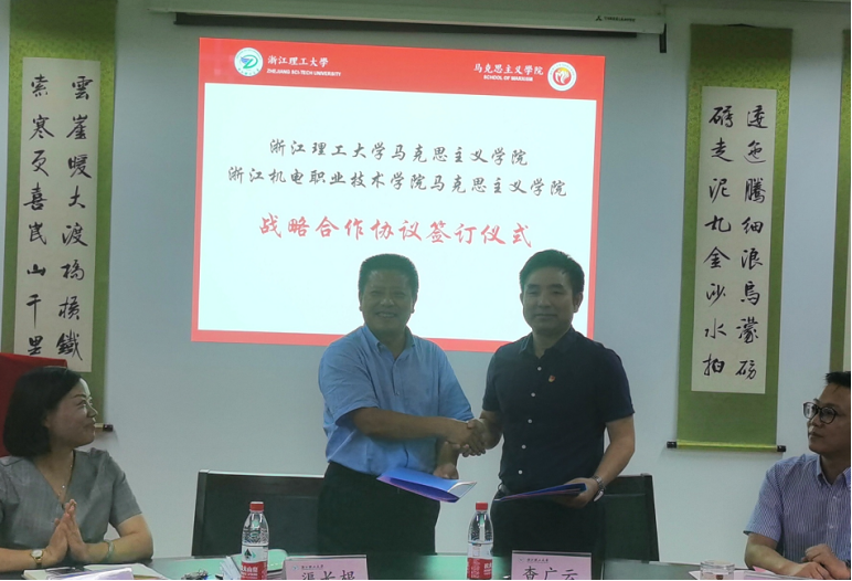 浙江理工大学与浙江机电职业技术学院具有良好的合作传统和扎实的合作基础。2019年浙江理工大学与我校就研究生培养工作进行了合作,建立了研究生培养基地。研究生合作培养为推进双方思政课建设工作提供了借鉴,奠定了基础。为加强新时代思政课建设的校际合作交流,特别是加强具有深厚学术底蕴与教学科研实力的全省高校重点马克思主义学院对新建马克思主义学院的指导,本着“合作帮扶,互学共建,相互促进、共谋发展”的原则,双方将以这次战略合作为契机,加快建立长效合作机制,在人才培养、教学科研、师资队伍、学科建设以及实践育人基地建设等方面开展广泛合作。