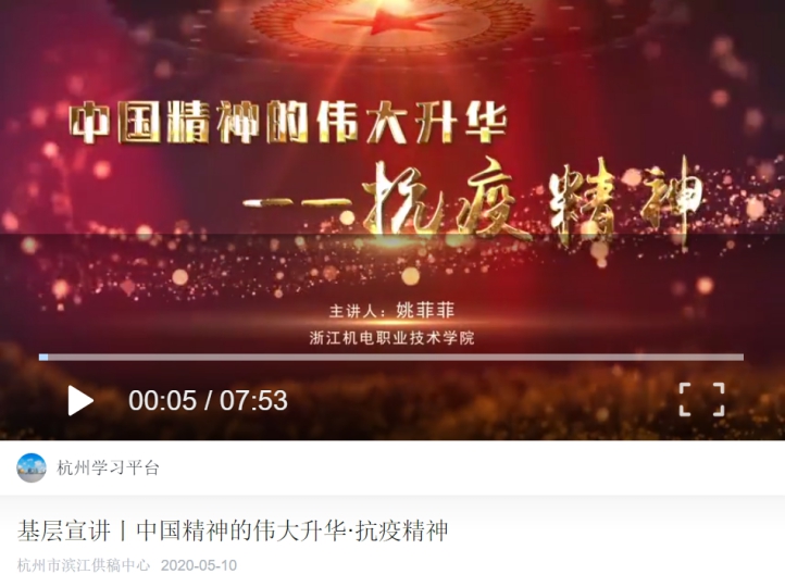 本次“战疫情”微课通过录制线上微党课、思政微课,传递党的声音,关注时事热点,追踪理论前沿,讲述身边的“战疫”故事,多视角为师生提供科学指导、开展学术探讨,引导师生坚定理想信念。此次微课比赛共征集作品9件,其中张永丽老师《“疫”战青春 无悔人生——从疫情看大学生如何树立正确的人生观》、姚菲菲老师《中国精神的伟大升华——抗疫精神》、李小风老师《透过战“疫”烽烟,深化认识网络生活中的道德要求》三个作品获得全校思政微课比赛一等奖;姚菲菲老师微党课和张永丽老师的思政微课被“学习强国”平台转载;张永丽老师思政微课被人民网公开课转载并入围浙江省高校思政微课比赛。