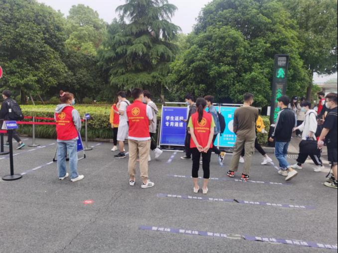 学生党员积极参加到了返校复学的常规工作中。他们自愿成为学生进出校园管控工作的志愿者,每日三个时间段内站在学校门口提醒着进出校园的同学们“请亮码”“请保持安全距离”“请快速通过”,为保障正常的复学秩序贡献了自己的力量。
