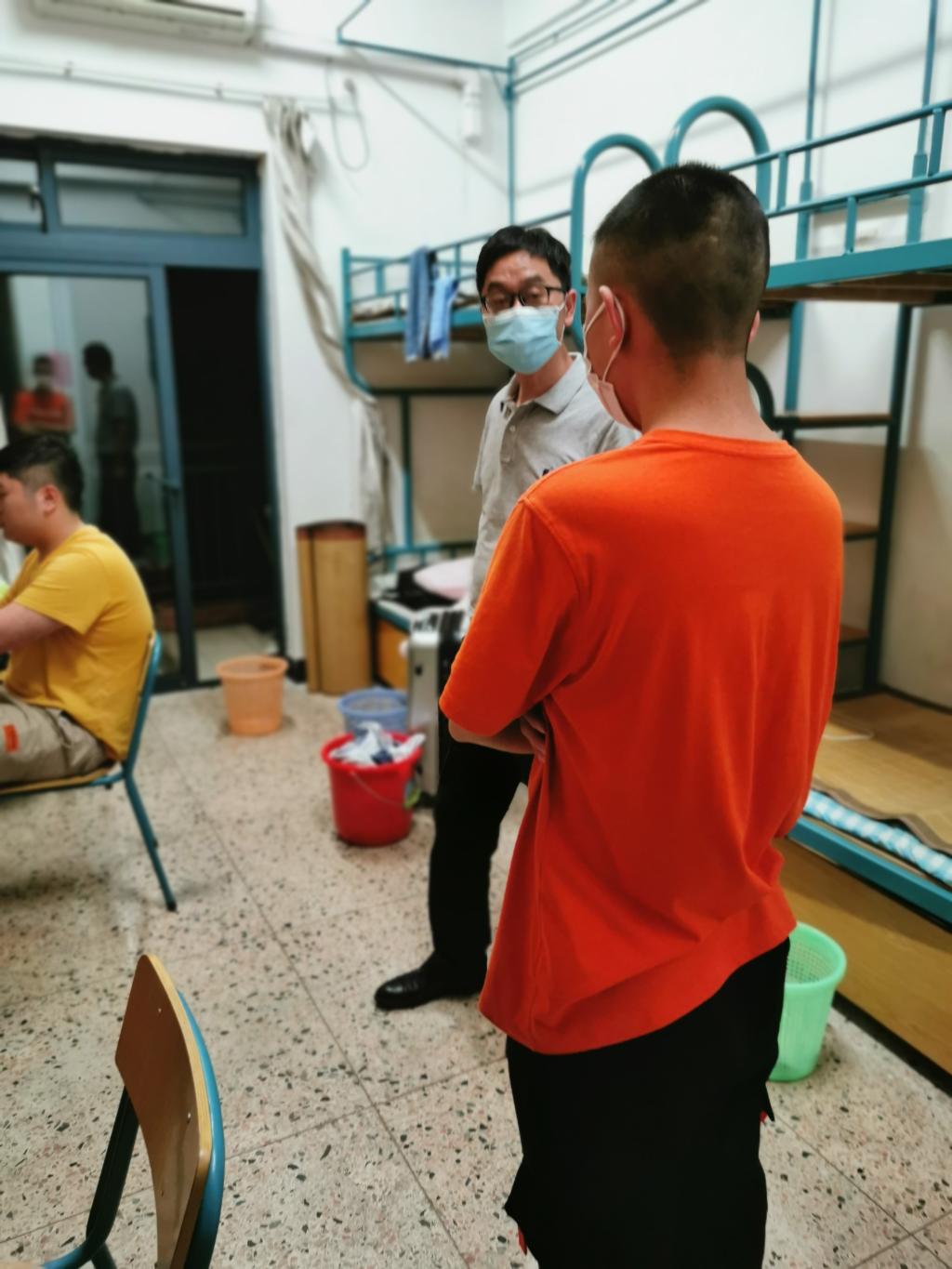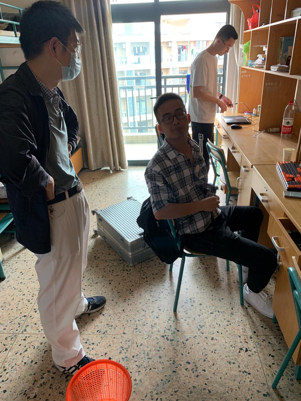 学生返回寝室后,学院领导、班主任老师前往寝室探望,了解学生情况,叮嘱学生做好寝室卫生,常通风。