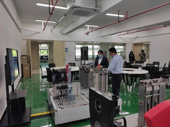 4月29日下午,轨道交通运营管理集团有限公司教育培训部部长兼浙江省轨道交通产教融合联盟秘书长叶梅魁女士一行三人来我校参观考察轨道交通产教融合实训基地,智慧交通学院院长边浩毅、办公室主任和相关专业教师陪同参观。叶部长一行主要参观了我校智慧交通实训大楼,实训大楼主要用于城市轨道交通机电技术专业的教学、科研、竞赛、实训等项目,边浩毅院长向叶部长一行详细介绍了实训大楼的整体规划、楼层布局以及教学、实验实训设备的配置情况,并现场演示了即将投入使用的部分教学设备。依托先进的教学和实验实训设备等优势条件,我校城市轨道交通机电技术专业人才输送与轨道交通产业相关岗位人才需求实现无缝对接,通过与行业企业深度合作开设“现代学徒制订单班”,将为企业源源不断地输送高素质的轨道交通专业技术技能人才,助力浙江省交通强国示范区建设。