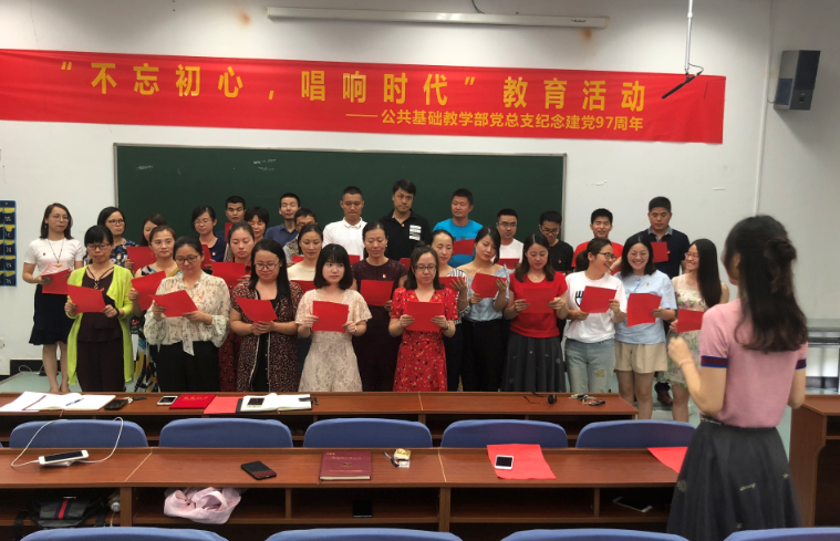 为了迎接建党97周年的到来,增强党组织的凝聚力和战斗力,提高党支部活动的质量,6月27日下午,学院公共基础教学部党总支开展“不忘初心,唱响时代”主题教育活动。公共基础教学部党总支全体党员教师参加了此次活动。