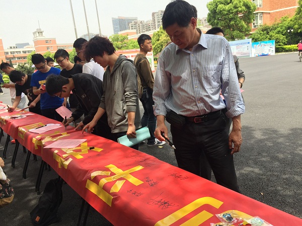 活动现场氛围热烈,工作人员热情耐心地为前来观看的师生讲解,建议树立安全意识,养成良好的习惯,做文明有礼的机电人。广大师生也积极响应,踊跃参与,纷纷在横幅上签下了自己的名字,用自己的行动来支持本次活动。