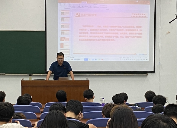 房利博士以《学习改革开放史——新时代将改革进行到底》为题,从改革开放的背景、伟大历程、具体措施、巨大成就等维度全面展现了改革开放波澜壮阔的伟大历程,充分展示了改革开放后我国在社会主义现代化建设进程中取得的伟大成就,引导学生进一步坚定了坚持党的领导、坚持改革开放,坚定不移走中国特色社会主义道路的信心和决心。