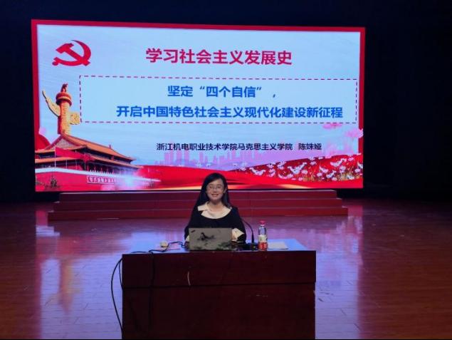 陈姝娅博士以《学习社会主义发展史——坚定“四个自信”,开展中国特色社会主义现代化建设新征程》为题,从科学社会主义的理论创设出发,深入阐释了中国是怎样历史地选择了中国特色社会主义道路,如何走向独立自主并开创和发展中国特色社会主义的光辉历程。